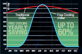 夏季,機組與常規機組一樣進行正常制冷;冬季,完全使用自然冷卻制冷,壓縮機制冷系統關閉,機組無壓縮機功耗,僅有少量的風扇運轉能耗;過渡季節,機組自動開啟自然冷卻功能,預冷冷凍水,自然冷卻不夠的部分,再由壓縮機制冷接力達到需求冷量。克萊門特采用W3000微電腦智能控制系統,其特有的自適應功能可根據用戶水溫、環境溫度變化智能地調節壓縮機供冷量。克萊門特多年的自然冷卻機組設計經驗與精確的資源整合控制,有力地保證了機組在滿足總冷量需求的前提下較小化壓縮機工作,較大化自然冷卻,用節能的方式可靠運行。因此,克萊門特自然冷卻風冷冷水機組產品系列可以實現高可靠性和高達60%的節能率。
